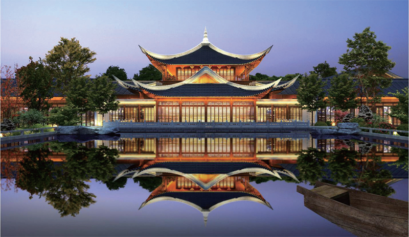 項目位于湖南省長沙市望城區,總建筑面積約1.35 萬平方米,擁有高端別墅客房68 棟,為超五星級酒店。